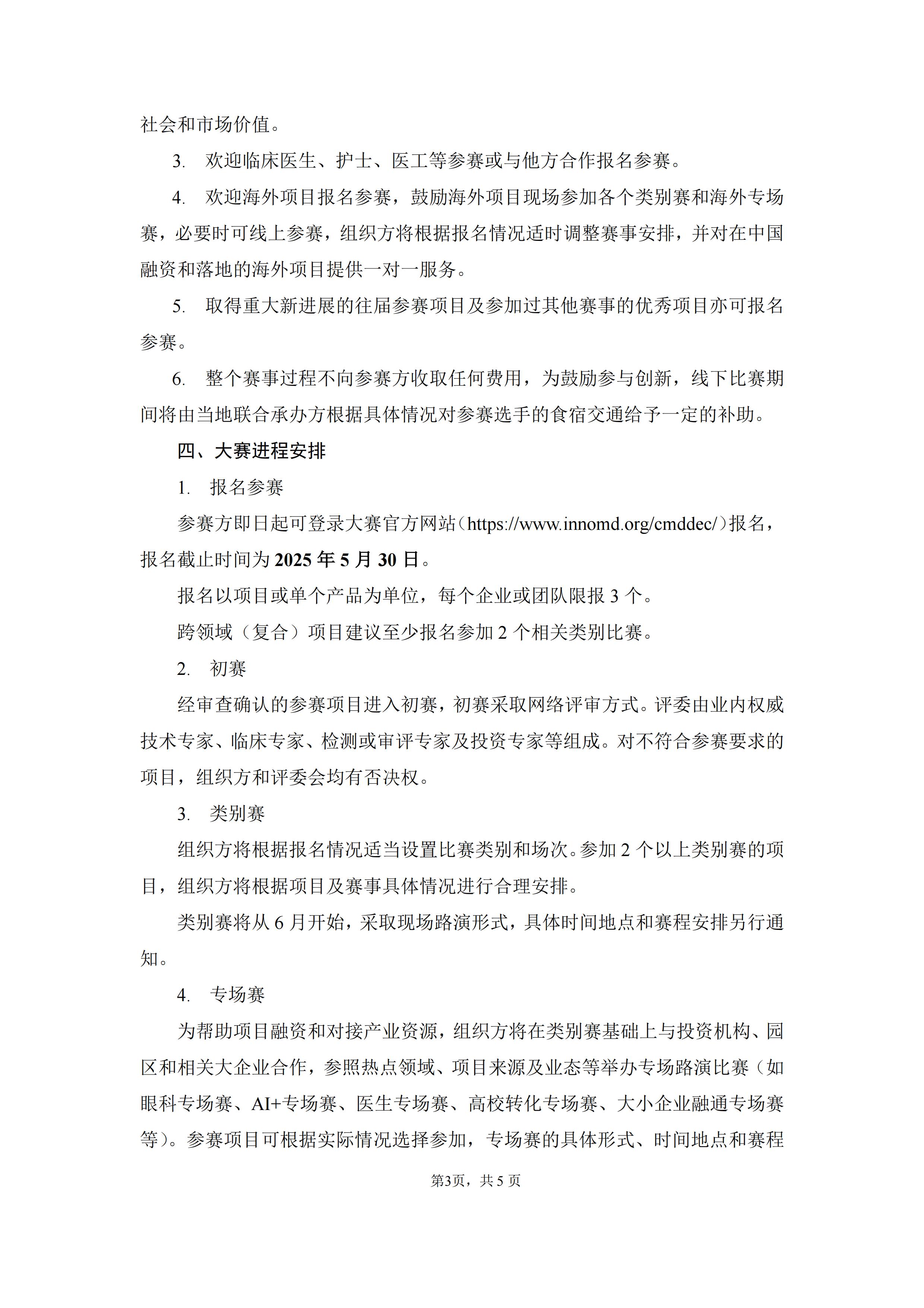 参赛方即日起可登录大赛官方网站(医疗器械创新网网://taiwenb.com/cmddec/)报名,报名截止时间为2025年5月30日。